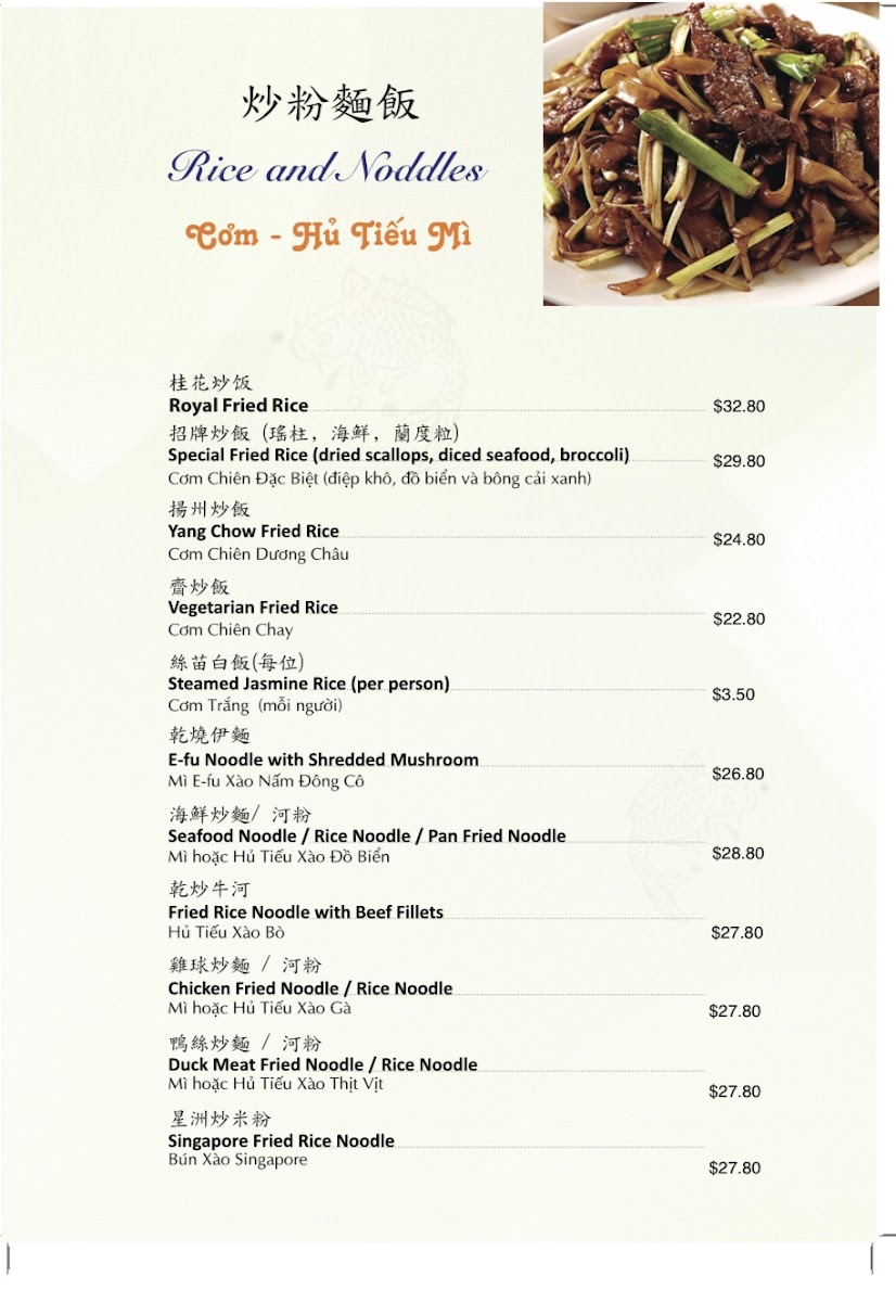 Welcome to the Golden Palace Seafood Restaurant, a culinary haven nestled in the heart of Cabramatta at Level 1/24-32 Hughes St. With an enticing menu that promises to take your taste buds on a flavorful journey, we specialize in offering a variety of delectable seafood dishes along with traditional Chinese delights. Begin your gastronomic adventure with the delicate Steamed Dim Sim or Gow Gee, and savor the flavors of our signature Vermicelli Crab Hot Pot. For those seeking something uniquely delicious, the XO Pipis with Rice Vermicelli is a must-try. Indulge in the succulent Steamed Free Range Chicken and the Traditional Steamed Silver Perch, or explore the rich taste of the Royal Fried Rice. For dessert, let our Egg Tart and Dessert Platter provide the perfect sweet finish. Whether you're celebrating with a Birthday Cake or exploring the nuances of our Cheung Fun, Golden Palace ensures a dining experience that's nothing short of spectacular. Don't miss the savory delight of our Peking Duck Pancakes and the spicy flair of Beef with Wasabi. We can't wait to welcome you and share our specialties!